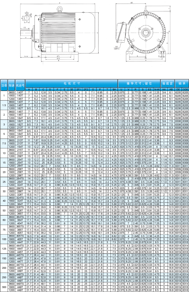 NEMA高效電機型號: